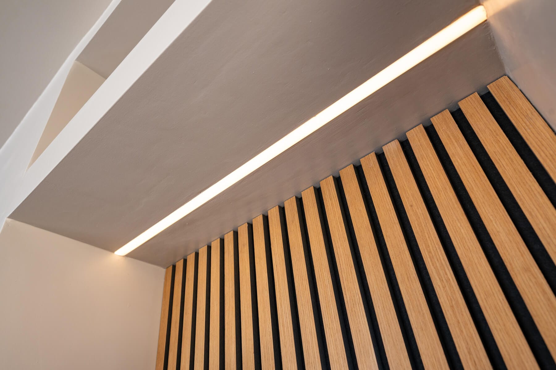 Yes, lighting is fully customisable in our modular designs. We can incorporate LED strips for ambient lighting, backlighting behind your TV, spotlights to highlight shelves, or sync lighting that responds to your content. The options are extensive. During the design process, we’ll discuss where you want lighting and what effect you’re after, then integrate it seamlessly into your wall media storage.